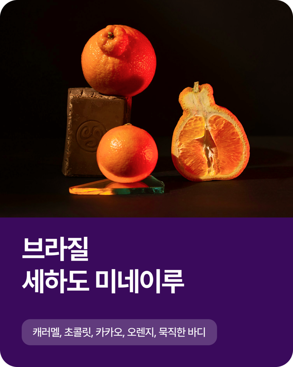 CUP NOTE 캐러멜, 초콜릿, 카카오, 오렌지, 묵직한바디, 클린