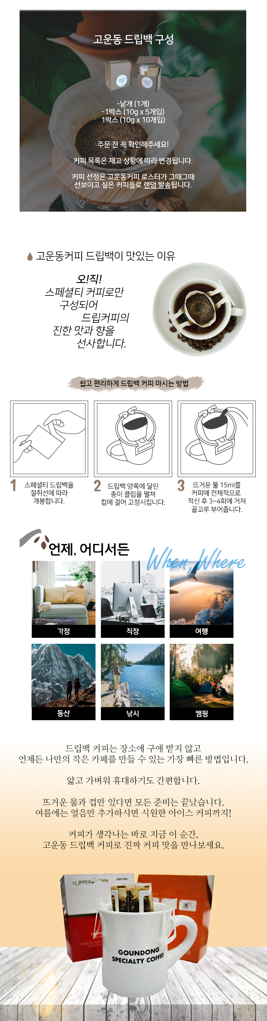 블렌드 드립백 구매 시, 5가지 원두를 섞어 발송됩니다.
