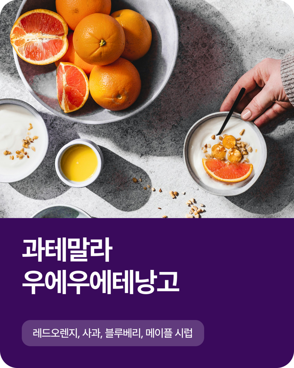CUP NOTE 레드오렌지, 사과, 블루베리, 메이플 시럽, 캐러멜