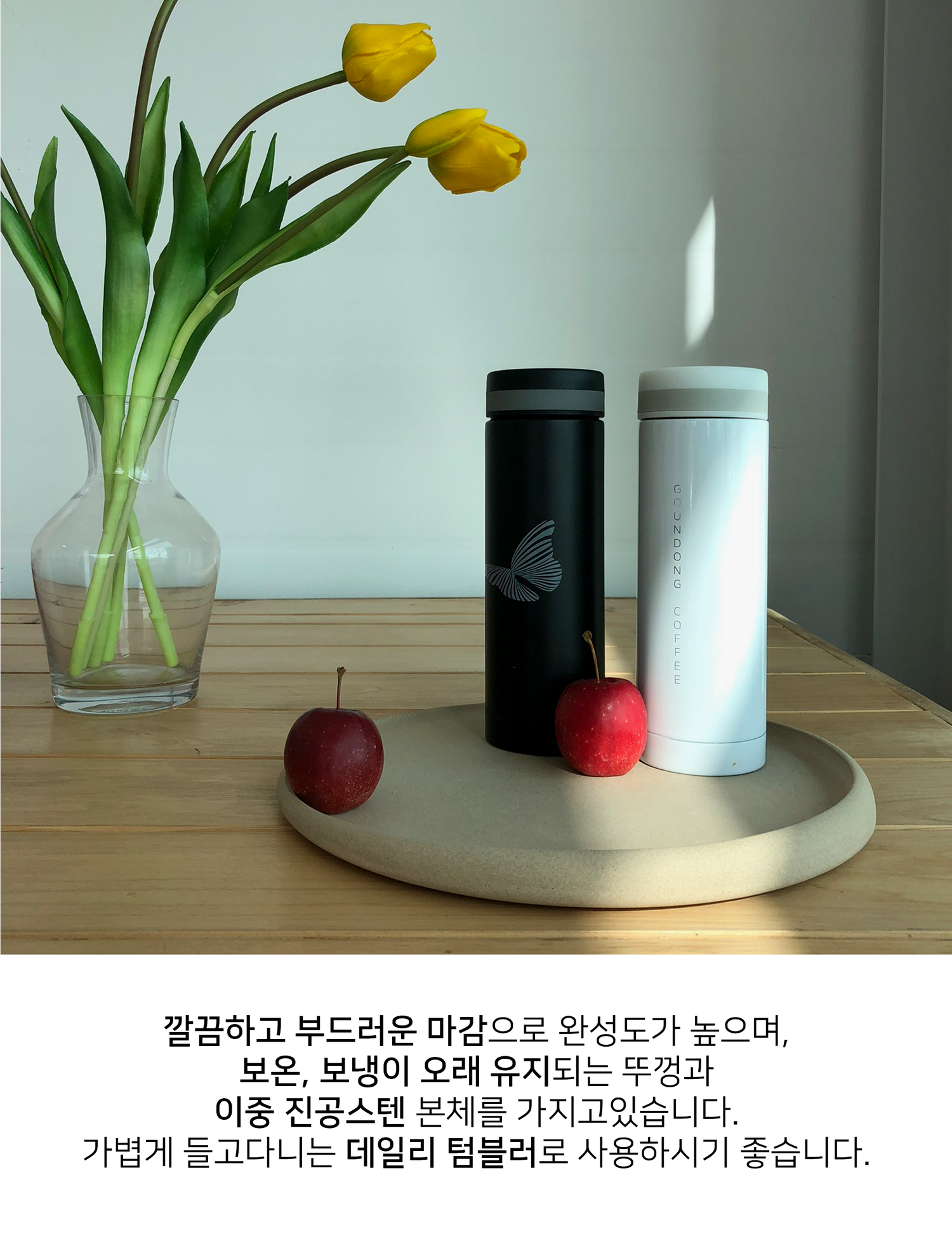 한 손에 감기는 사이즈로 활용도가 높은 고운동 텀블러입니다.